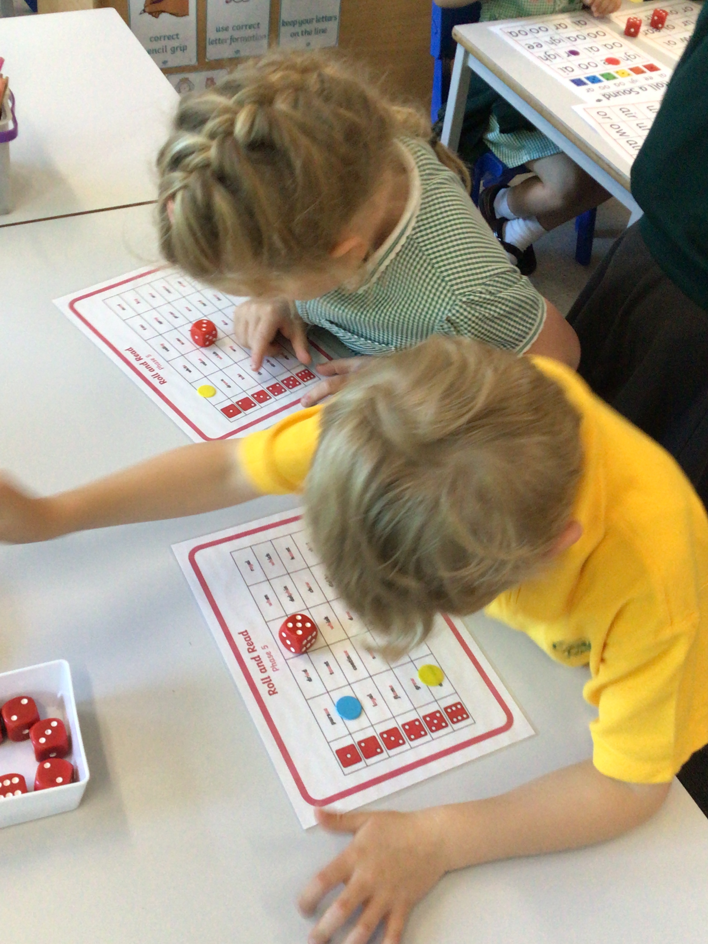 This week we have had a few big phonics sessions. We are practising reading lots of words and sentences. We have been focusing on words with b, d, p and q in them as a few of us have been getting a bit mixed up with these letters in words. We have also been looking at blends at the beginning of words, focusing on spr, str, br – words like spring, stair, brake etc.