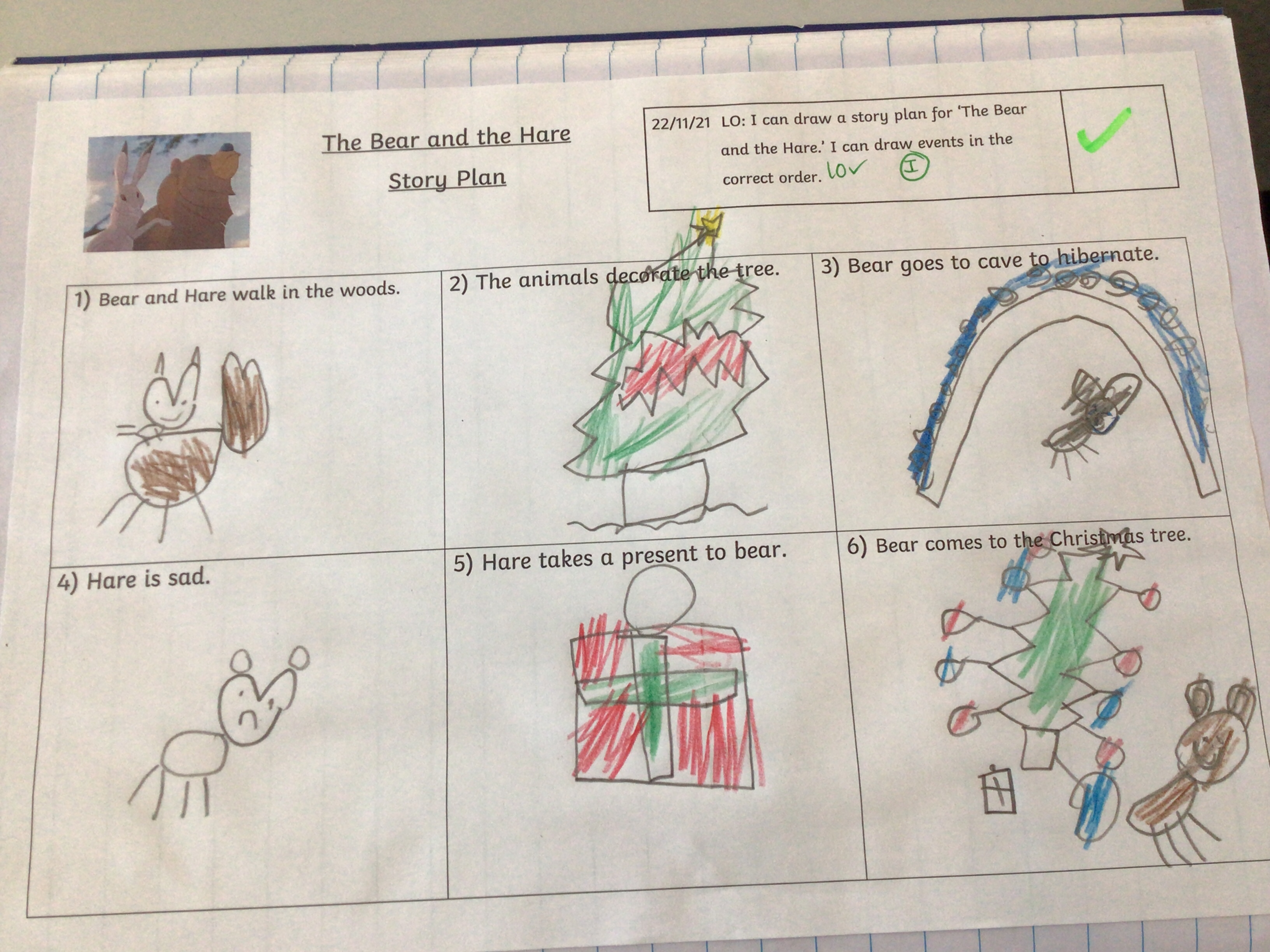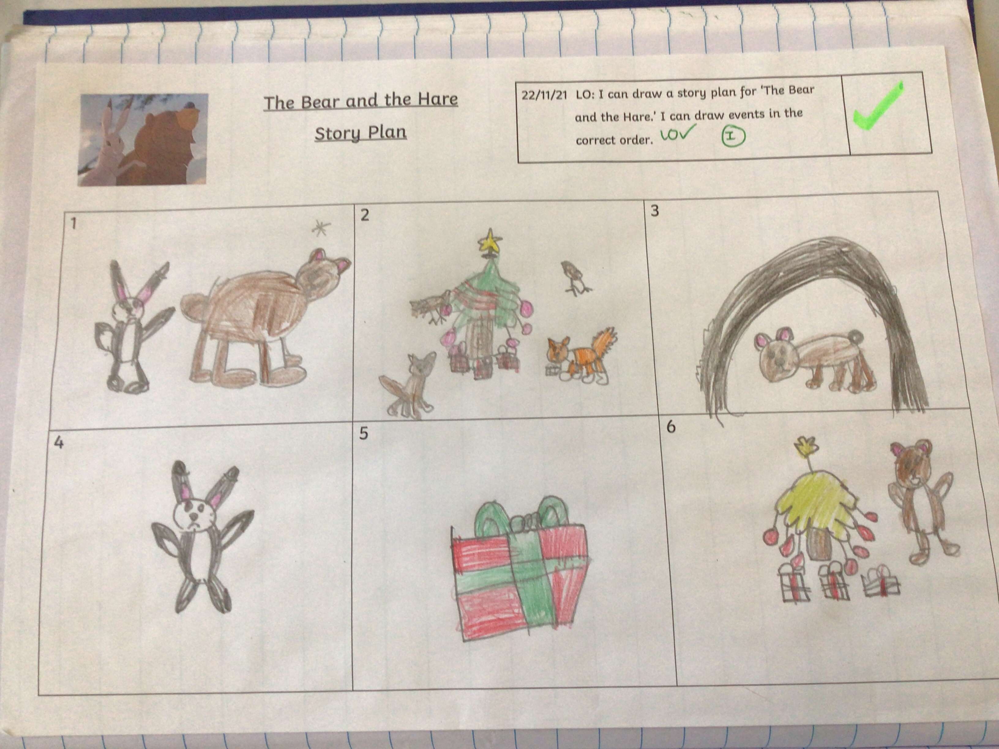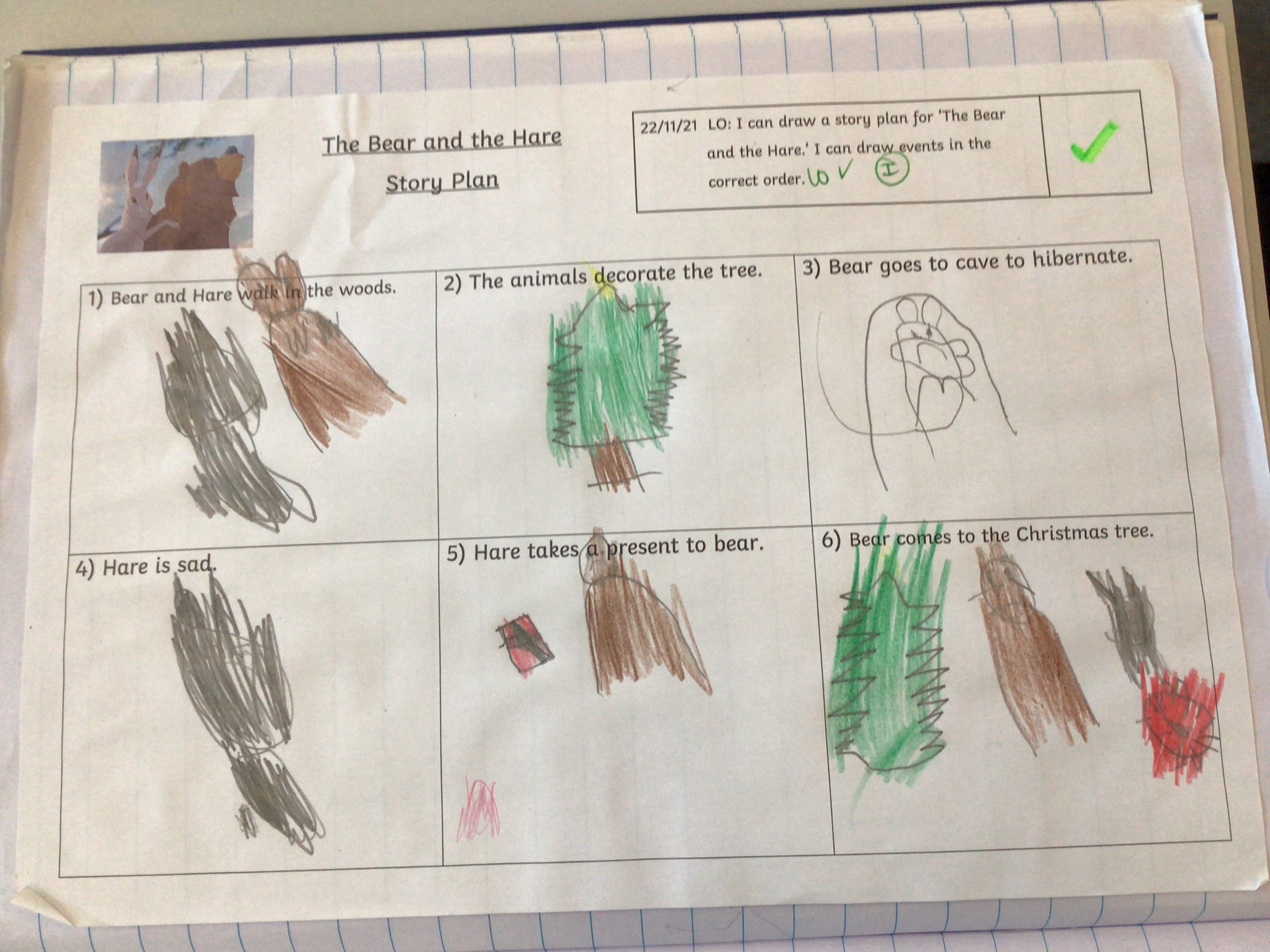 This week we have started our new unit in English. We are looking at the story ‘The Bear and the Hare.’ We watched the video (John Lewis advert) and then discussed what was happening in the story.