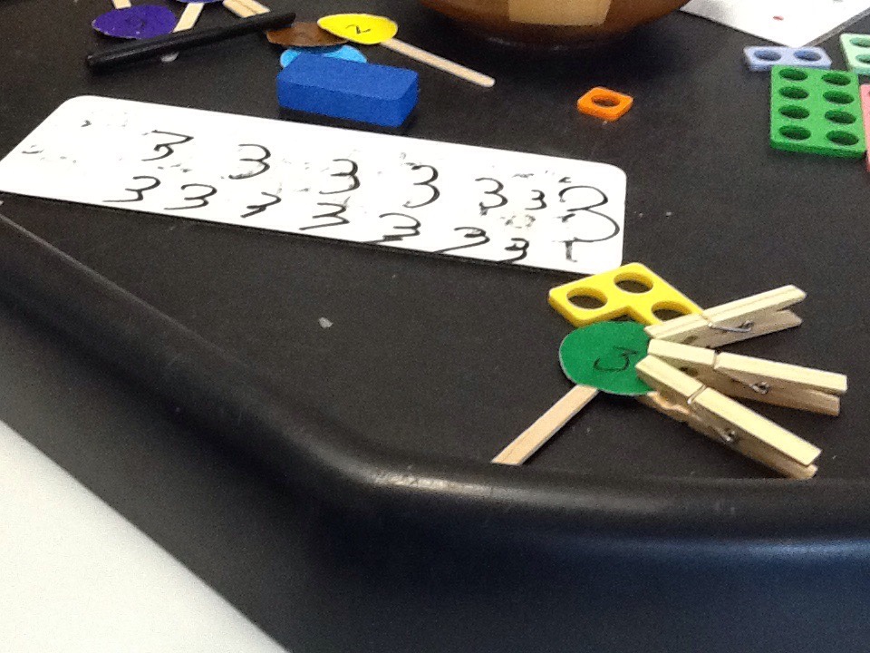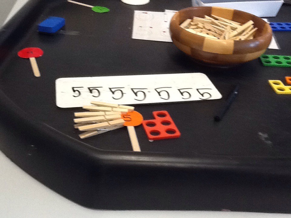 We have also been focusing on correct number formation this week and our funky fingers challenges was putting pegs onto the correct flowers and then writing the number correctly – no cheeky reversed numbers!