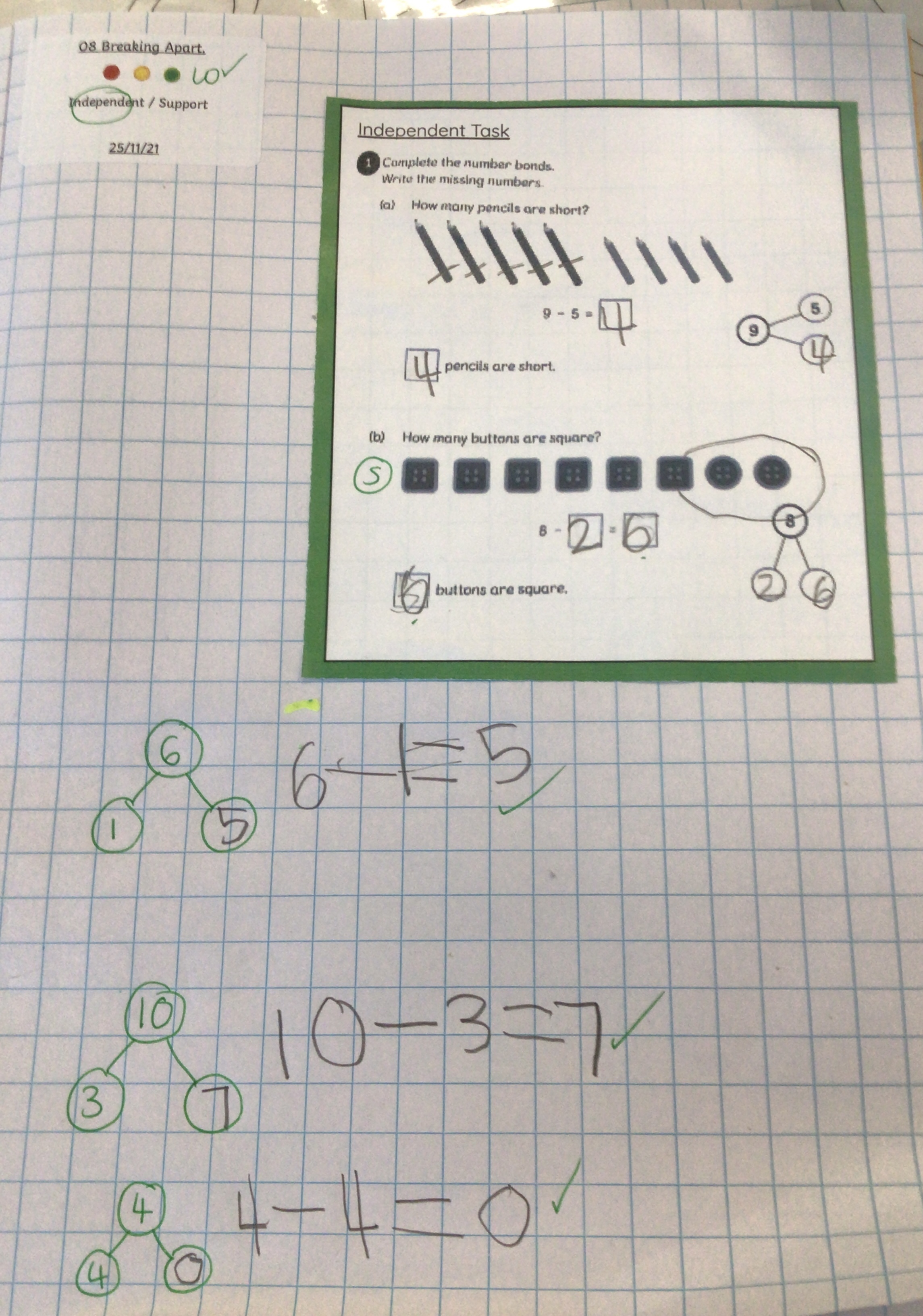 We then moved on to use our part whole models and to use subtraction to help us find the missing part.