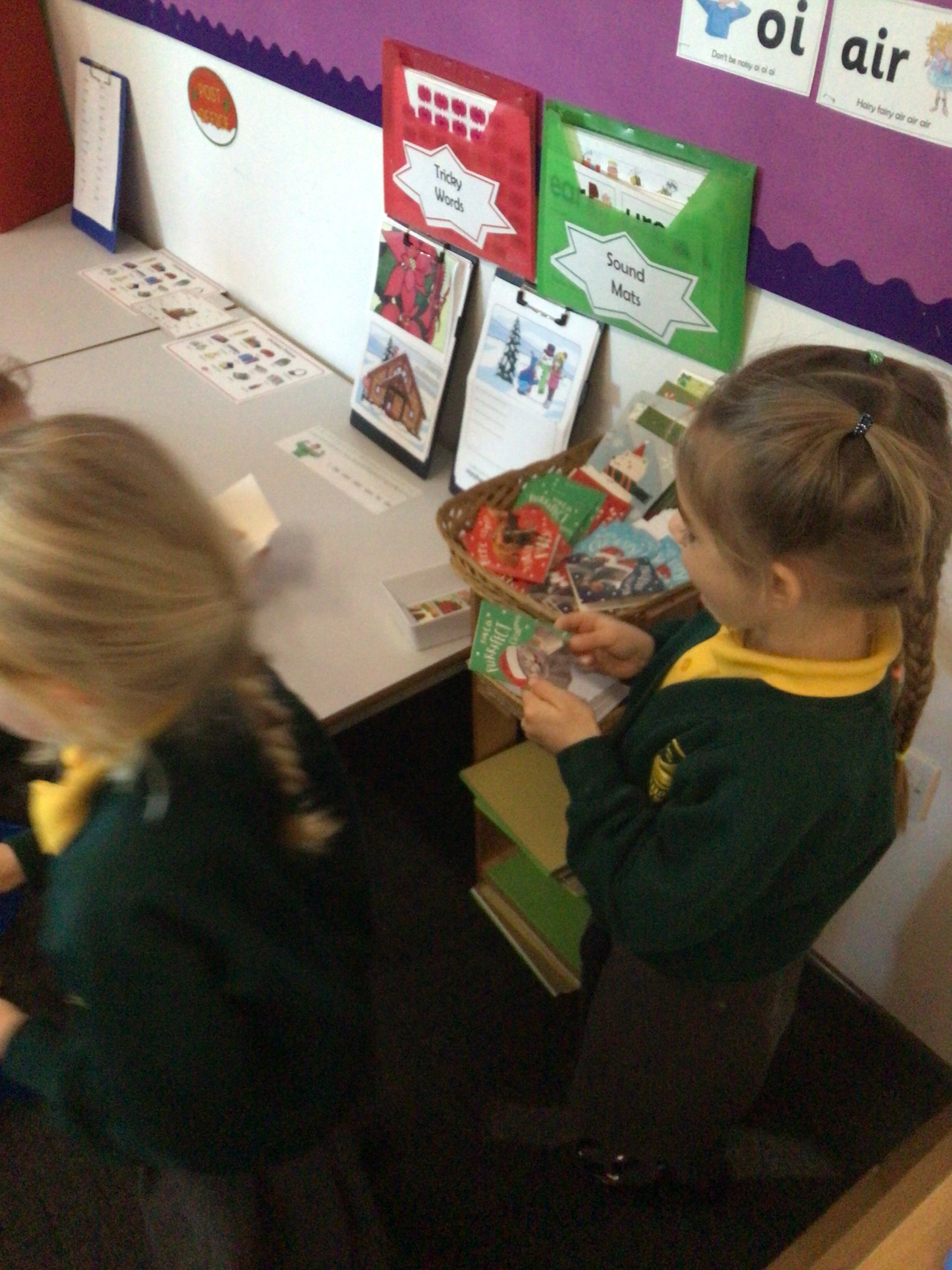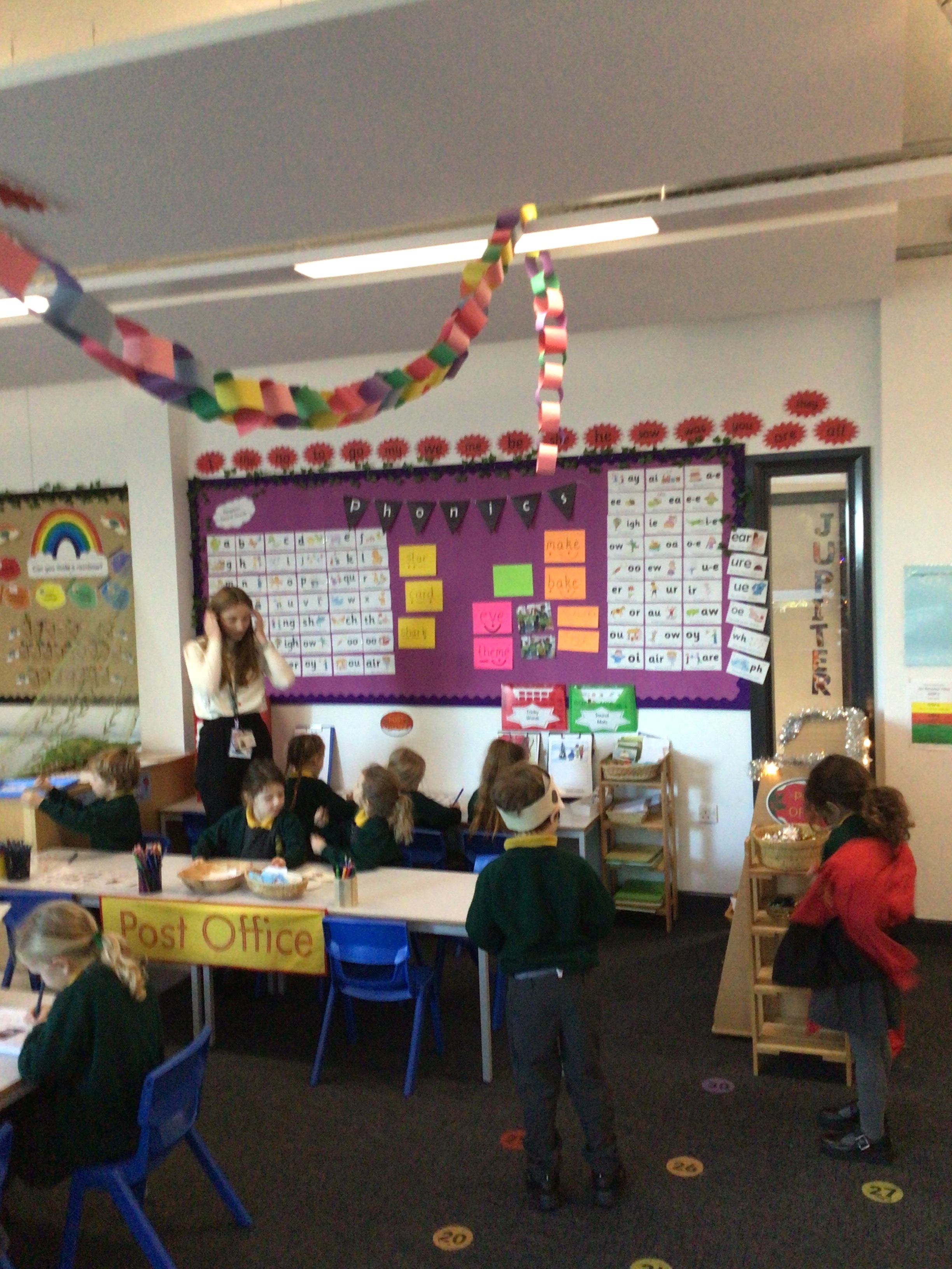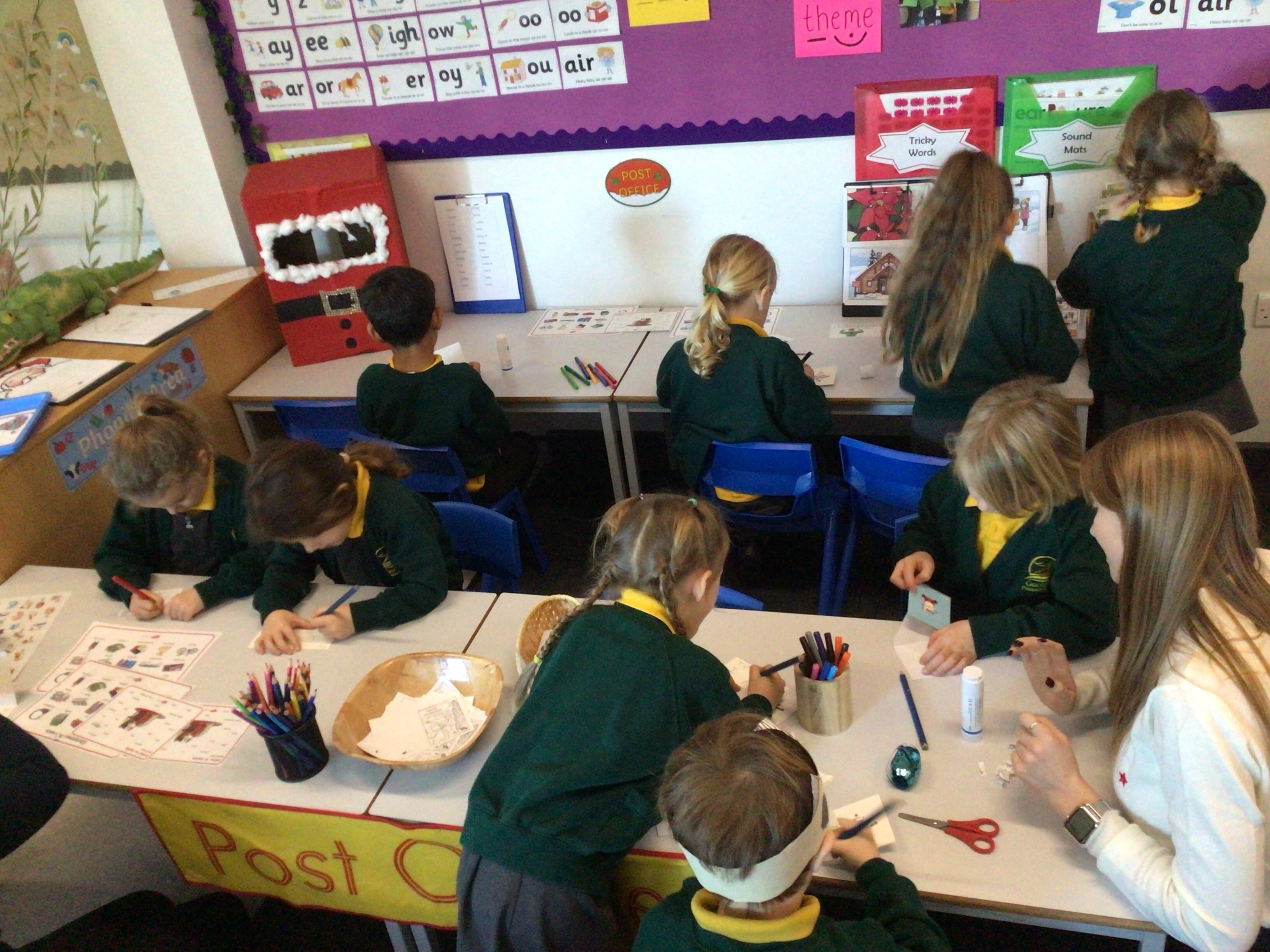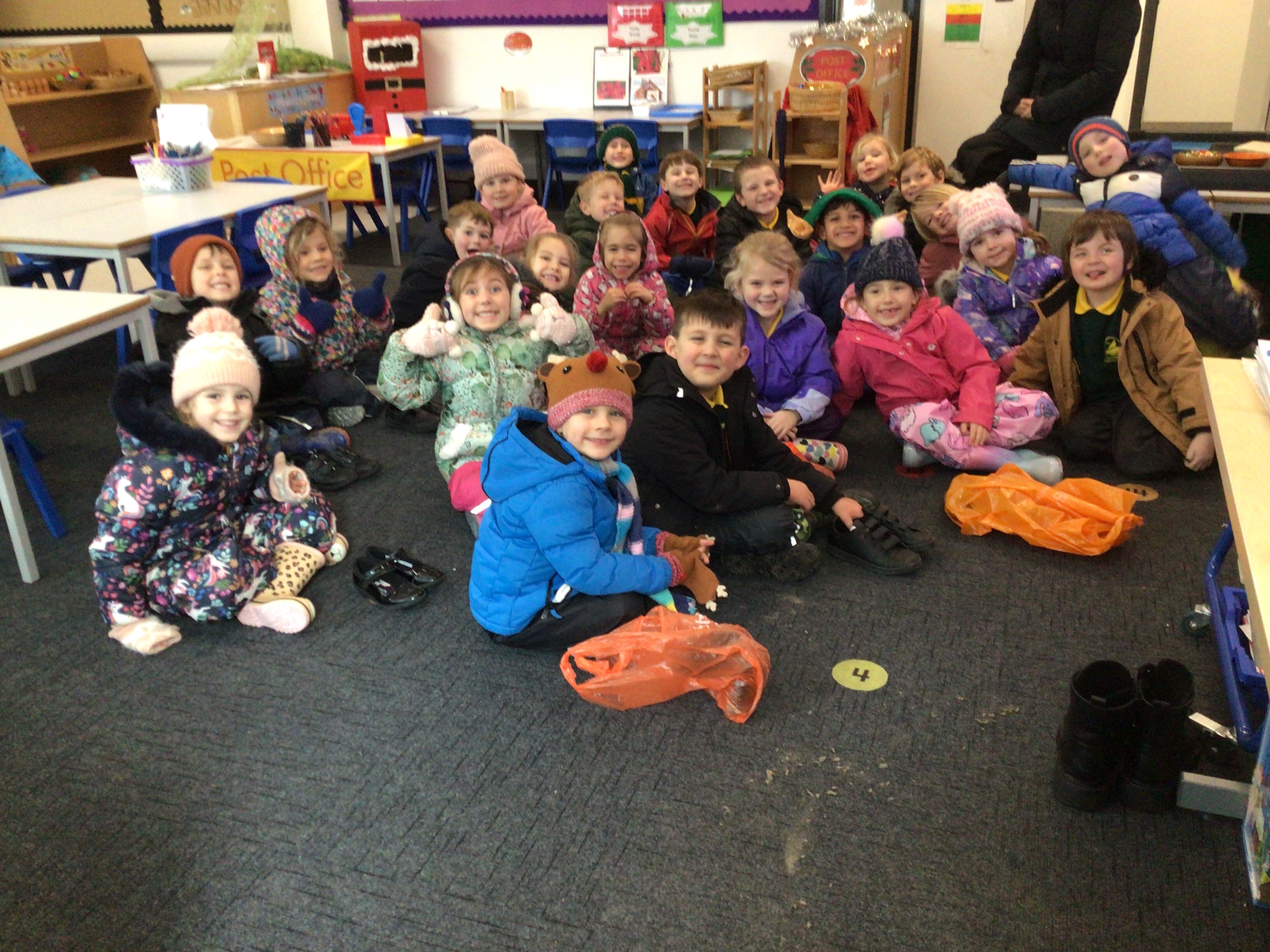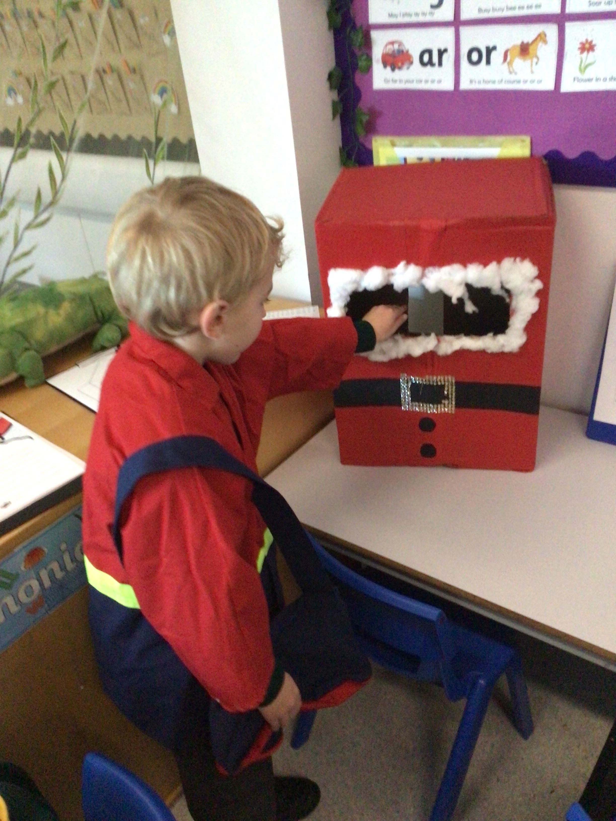 We were very excited this morning to discover that the classroom has been turned into a Winter Wonderland! All the children’s paper chains have been hung, the Christmas tree put up and fairy lights everywhere! The writing area has been turned into a Christmas post office with a Father Christmas post box. It has been such a busy area of the classroom all day! The children have thoroughly enjoyed making cards for each other and for family members and writing letters to Father Christmas!