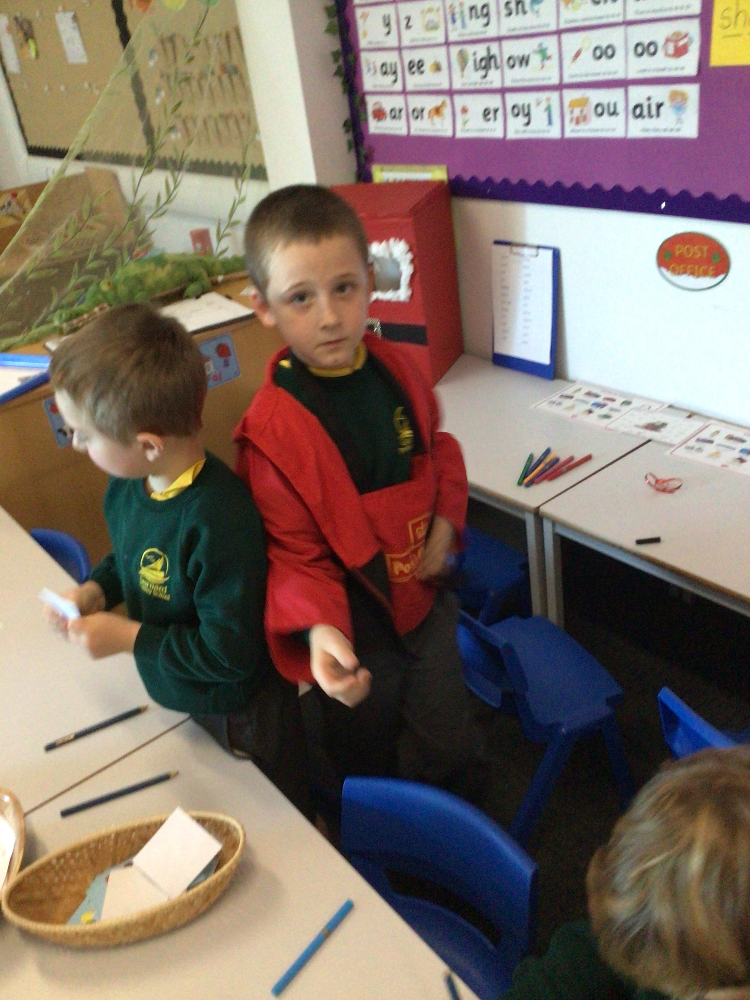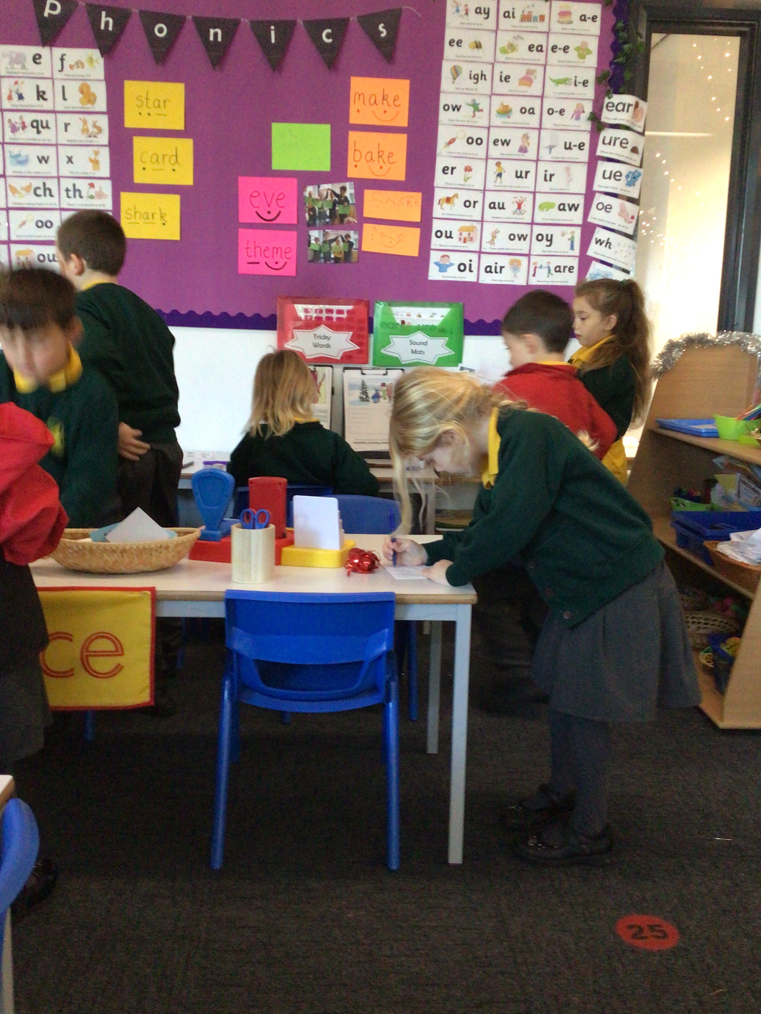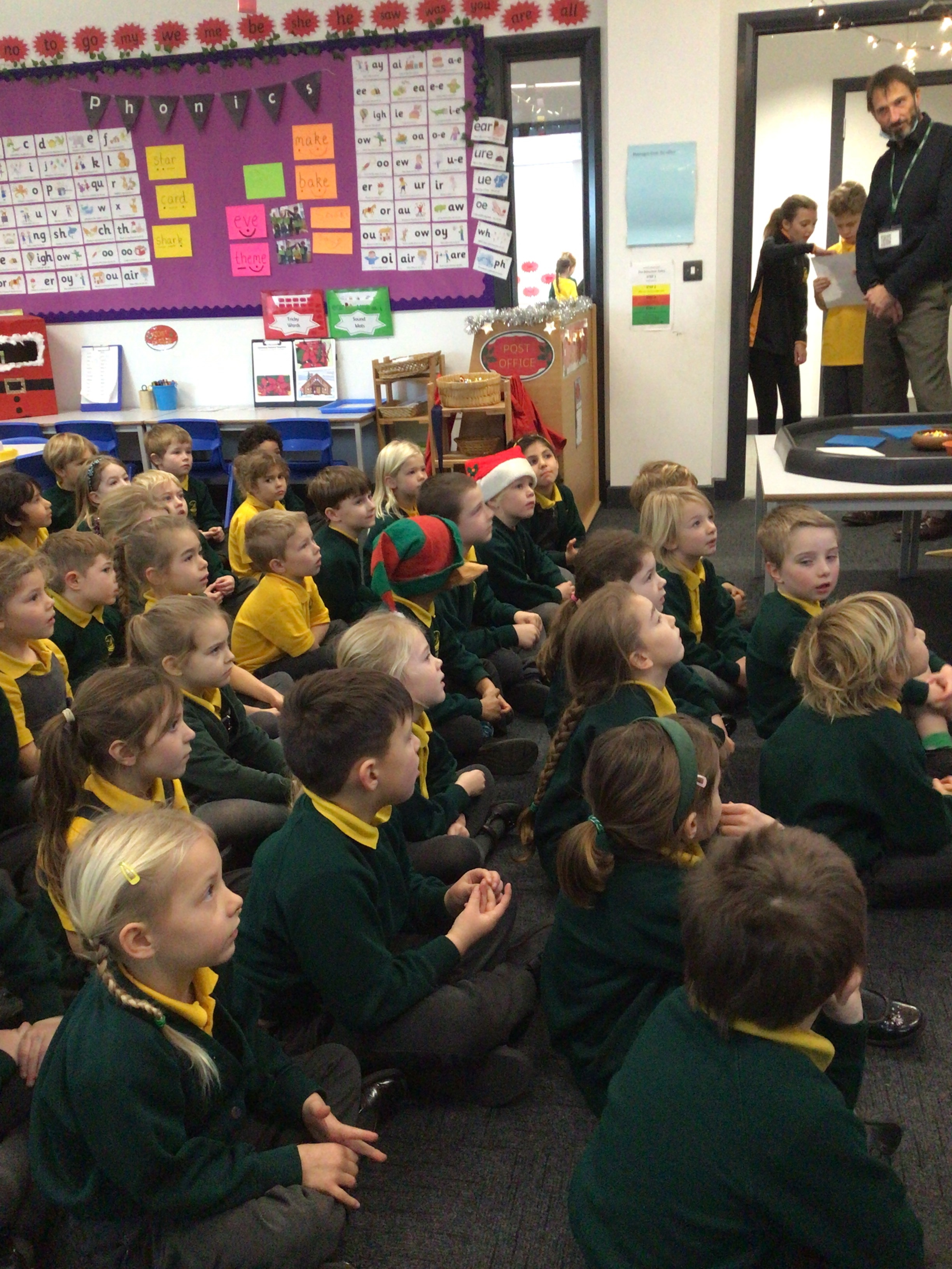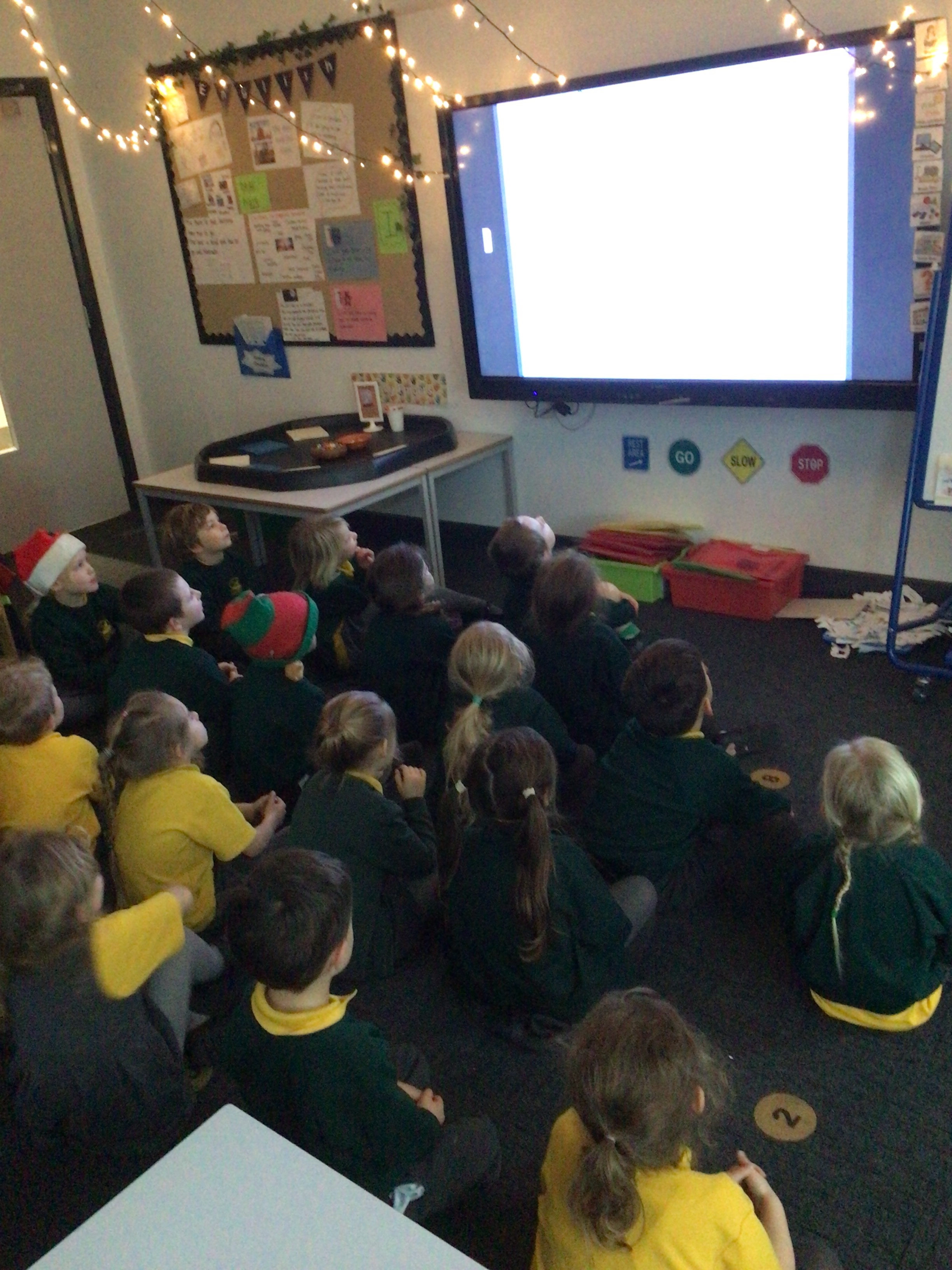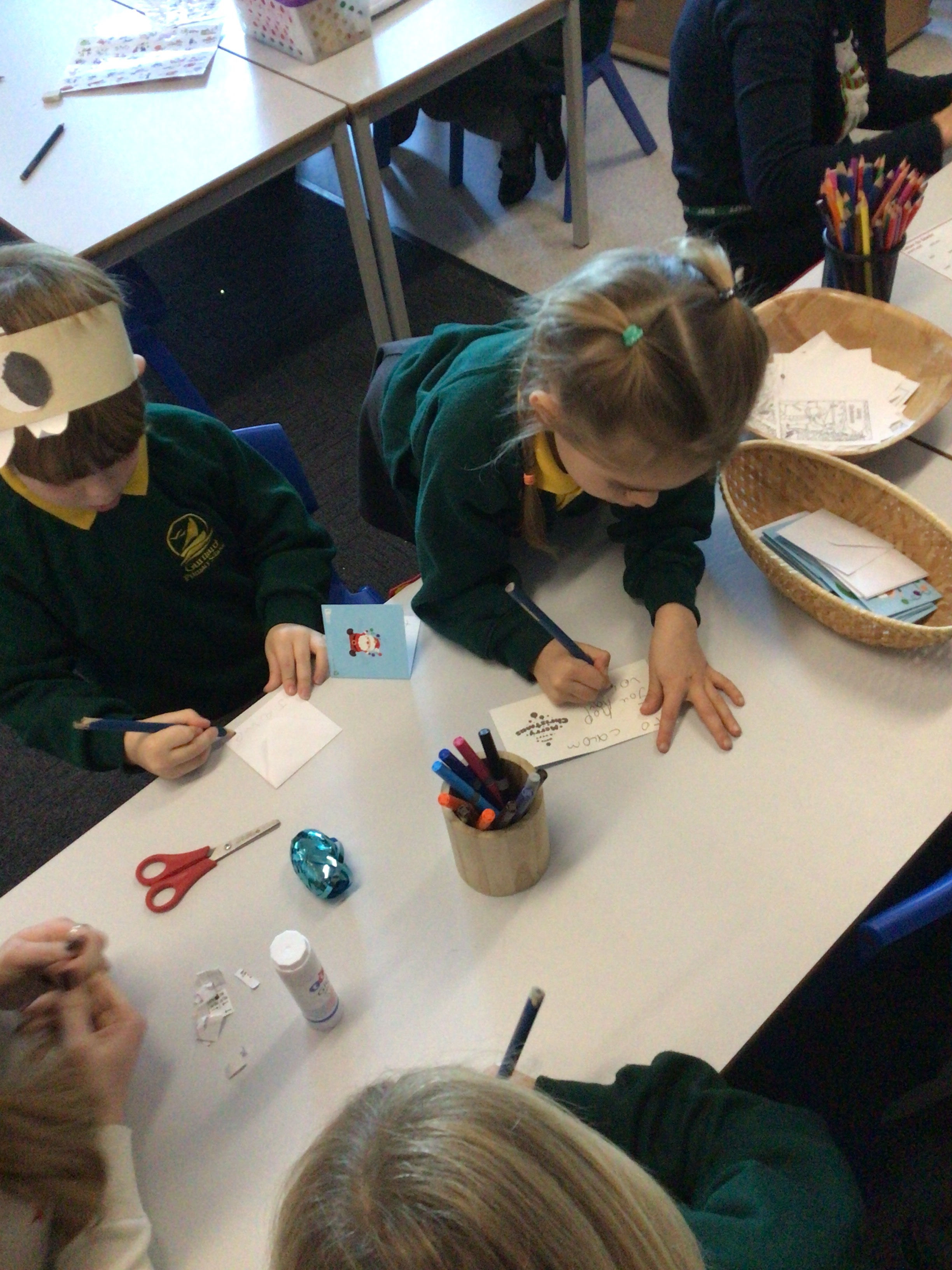 We were very excited this morning to discover that the classroom has been turned into a Winter Wonderland! All the children’s paper chains have been hung, the Christmas tree put up and fairy lights everywhere! The writing area has been turned into a Christmas post office with a Father Christmas post box. It has been such a busy area of the classroom all day! The children have thoroughly enjoyed making cards for each other and for family members and writing letters to Father Christmas!